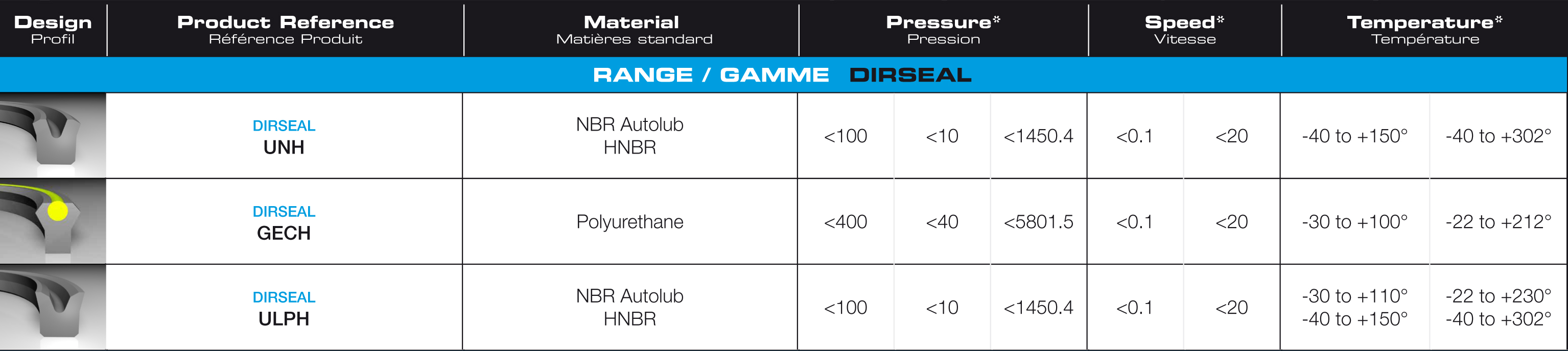 Le produit le plus couramment utilisé est le joint de type UNH, issu de la gamme DIRSEAL développée par PXL SEALS.